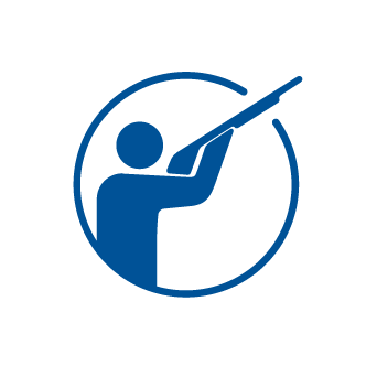• La Fosse olympique. Tir «épaulé» sur des plateaux fuyants lancés selon une trajectoire et un angle inconnus. Deux cartouches par plateau.